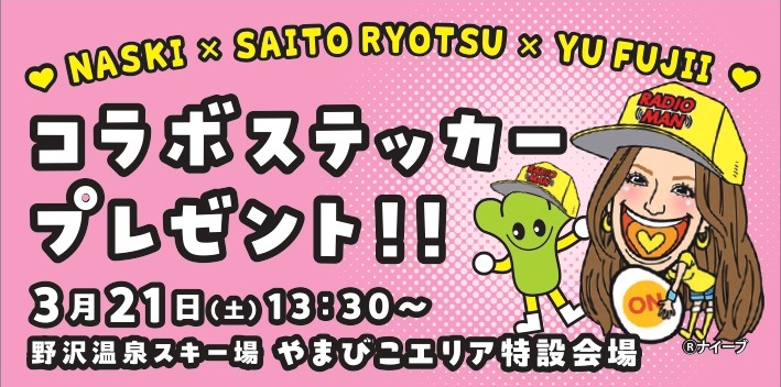 NASKI×SAITO RYOTSU×YU FUJII コラボステッカープレゼントイベント!先着100名様に藤井悠×ナスキーのオリジナルコラボステッカーをプレゼント!ドリンクのサービスやじゃんけん大会もあります!