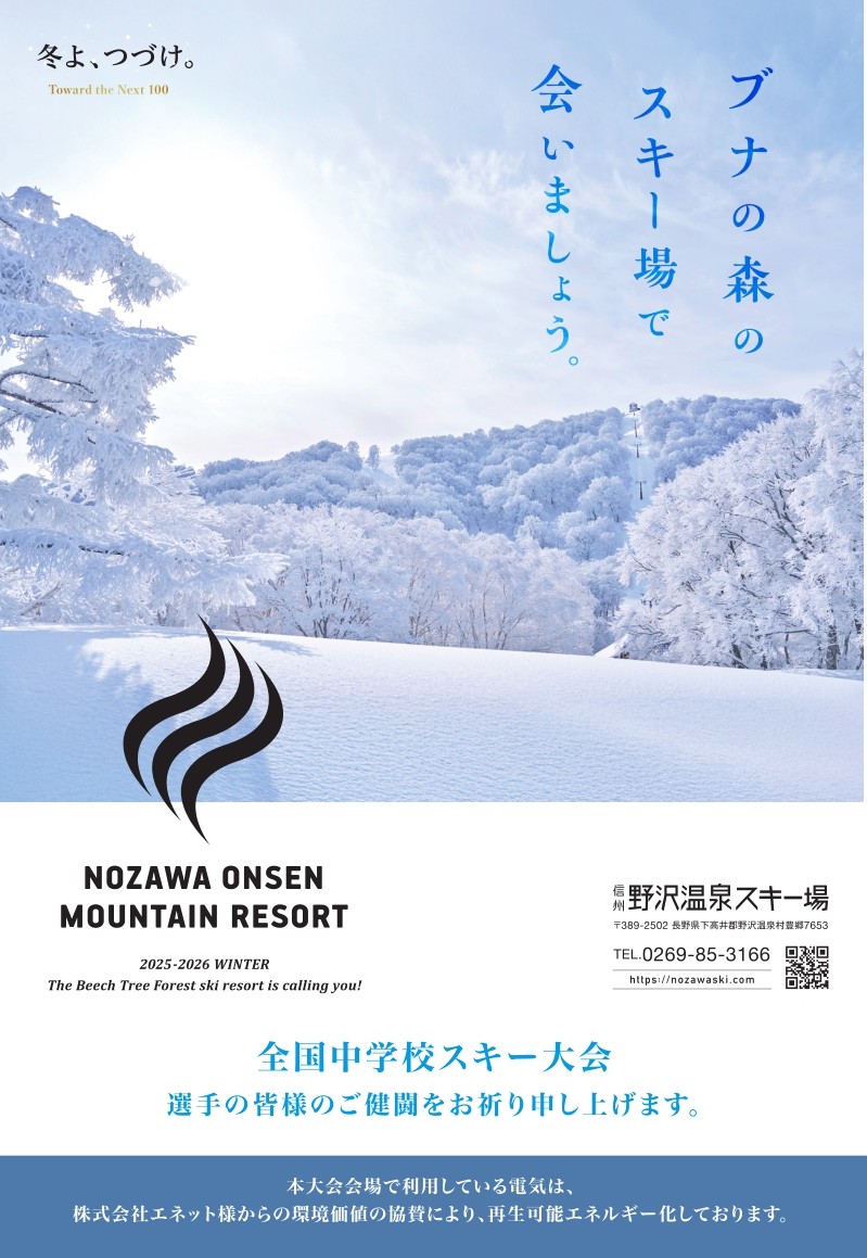 information スキー場からのお知らせ TOP スキー場からのお知らせ第63回全国中学校スキー大会会場の再生可能エネルギー化について 第63回全国中学校スキー大会会場の再生可能エネルギー化について お知らせ UPDATE : 2026.02.02 2026年2月3日から当スキー場で開催される第63回全国中学校スキー大会の各種目会場で利用する電気について、株式会社エネット様からのグリーン電力証書協賛により再生可能エネルギー化いたします。未来を生きる人たちに繋いでいくために。 野沢温泉スキー場は、パートナーと共にサスティナブルな活動を推進していきます。【再エネ化対象施設(2月1日から2月28日まで)】 日影ゴンドラ・ カンダハーぺアリフト・ カンダハーゴールハウス・ ジャンプハウス・ 南原ゴールハウス・ 南原管理棟 前の記事へ 一覧に戻る 次の記事へ